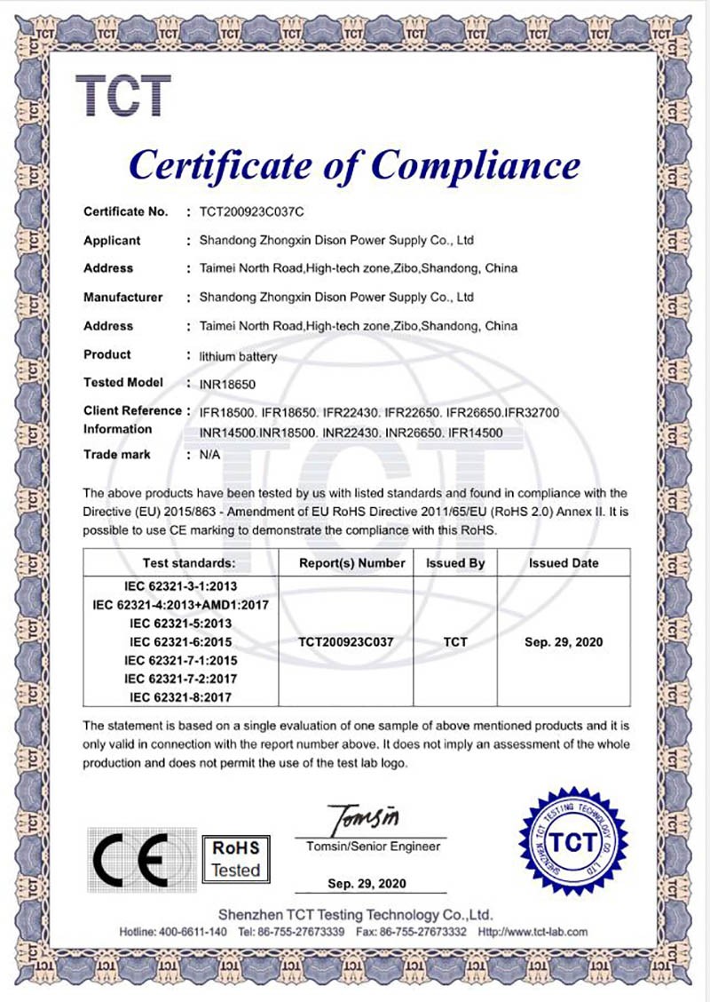 锂离子电池厂家山东中信迪生电源有限公司(DISON)